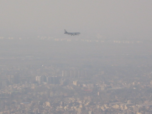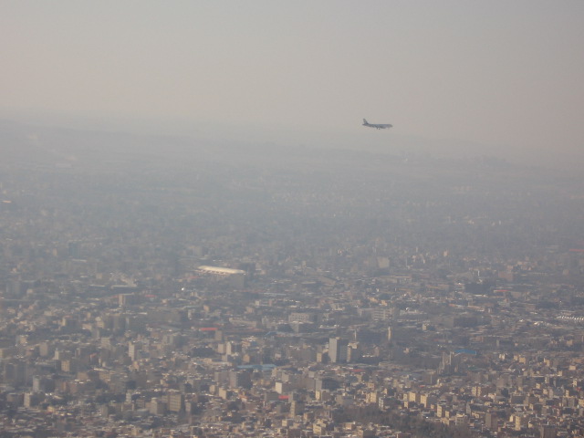 این تصاویر را از فراز کوه عینالی گرفته ام . در تصویر اول و دوم برج مرکز تجارت جهانی تبریز را مشاهده می کنیم . هواپیمایی که در حال فرود است و به فرودگاه نزدیک می شود را می بینیم . هوای اکثر شهر های بزرگ ایران آلوده است و تبریز هم استثنا نیست اما هوای کوه خیلی خنک است و تمیز .